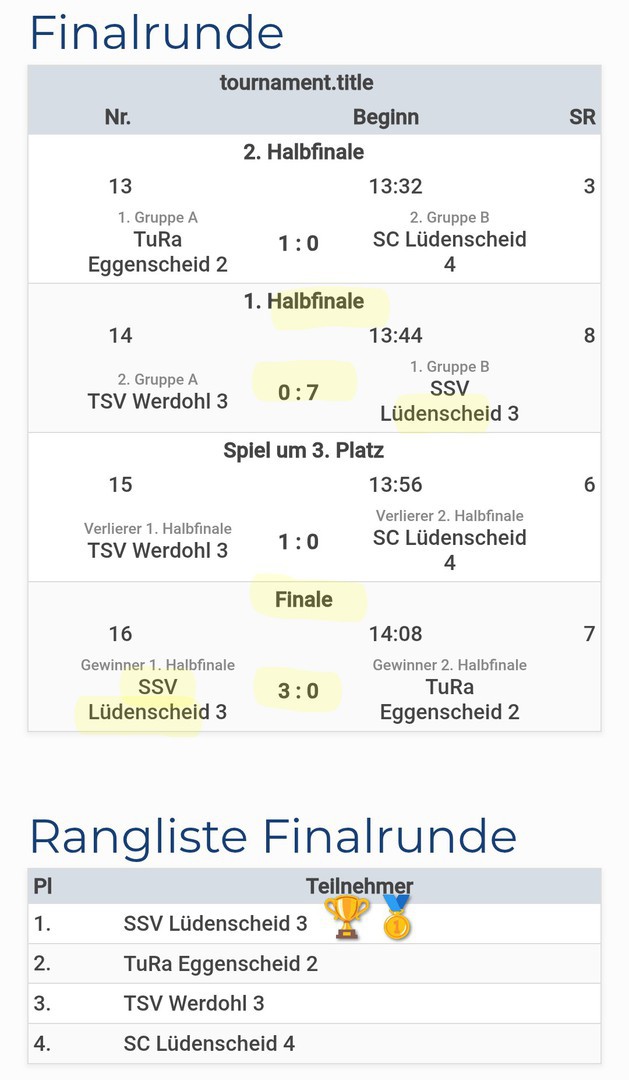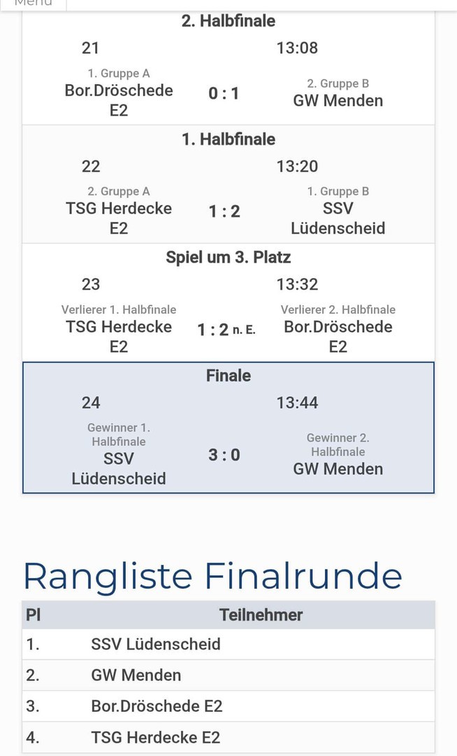 Unsere E-Junioren vom SSV Lüd. haben am 07.12.2025 einen beeindruckenden Turniersieg gefeiert! Beim gut besetzten Hallenturnier in Schalksmühle, ausgerichtet von unseren Freunden vom TuS Stöcken-Dahlerbrück, zeigten die jungen Kicker eine herausragende Leistung und krönten sich zum ungeschlagenen Turniersieger! Die Grundlage war die geschlossene TEAMLEISTUNG! Die Trainer, Markus und Jerusan, zeigten isch nach dem Turnier mächtig stolz: "Was die Jungs heute abgeliefert haben, war fantastisch! Teamgeist und Fußballfreude pur!"